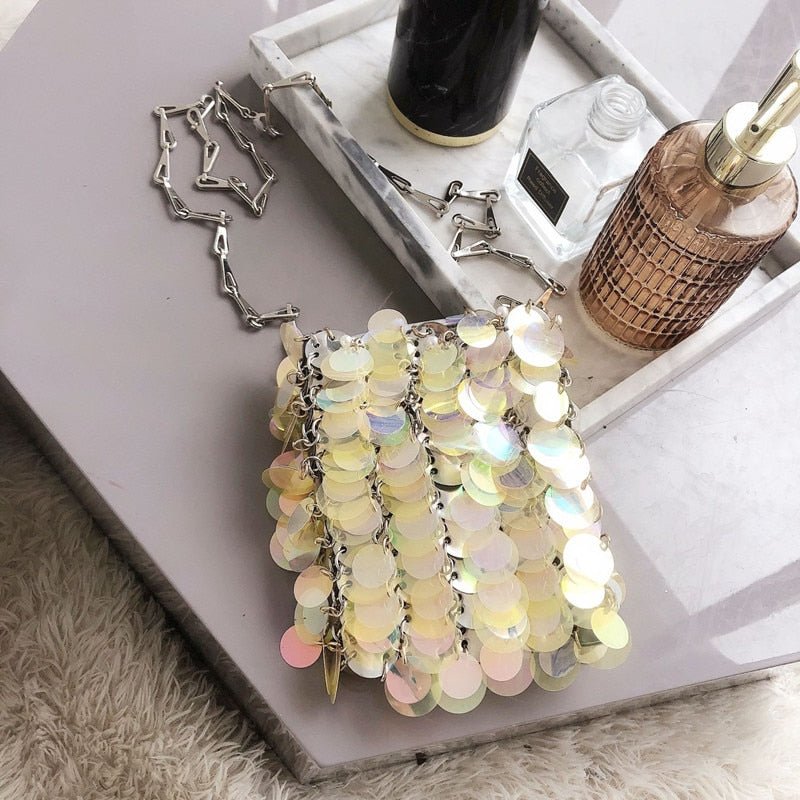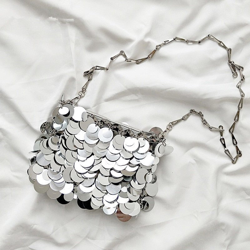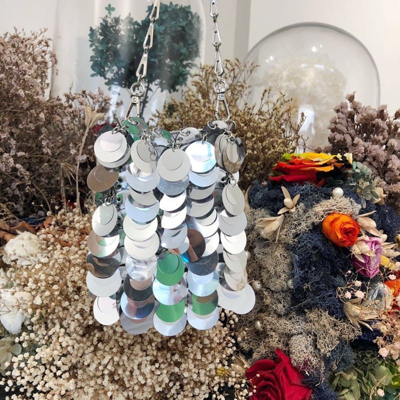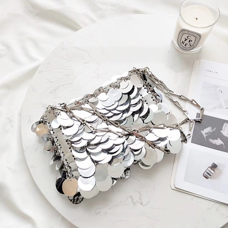 Bolsa Brilho Paetês Prateada - Frete Grátis