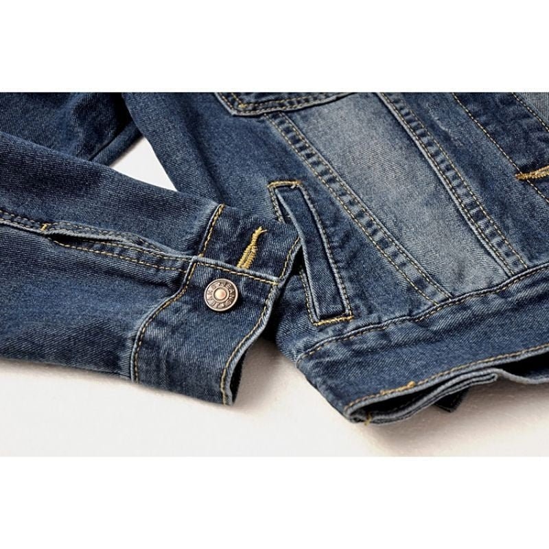 Feita com tecido de jeans de alta qualidade, essa jaqueta combina perfeitamente com qualquer look,. Seu design clássico e acabamento impecável proporcionam uma peça atemporal que nunca sai de moda.