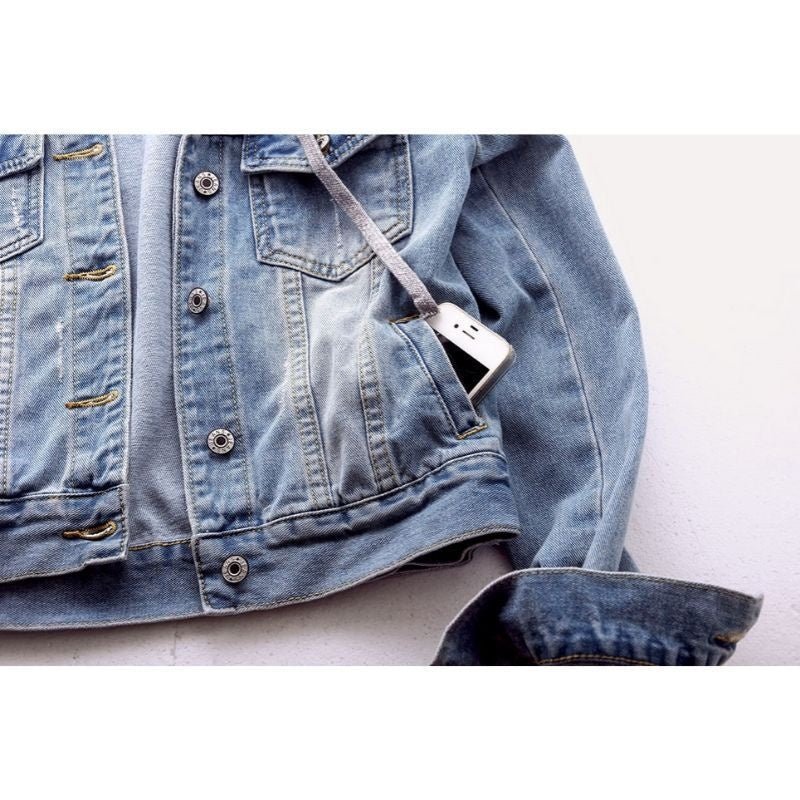 Jaqueta Jeans Feminina com Capuz - Frete Grátis