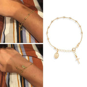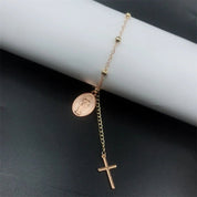 Pulseira Feminina em Aço inoxidável com Pingentes Cruz e São Bento Rosário