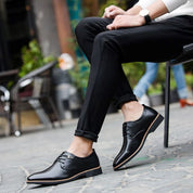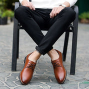 Feito em couro premium para garantir a máxima qualidade aos seus pés e proporcionar um caminhar mais confortável e sem dores; O sapato social masculino de couro possui um corpo respirável para bloquear a proliferação de bactérias e não causar maus odores.